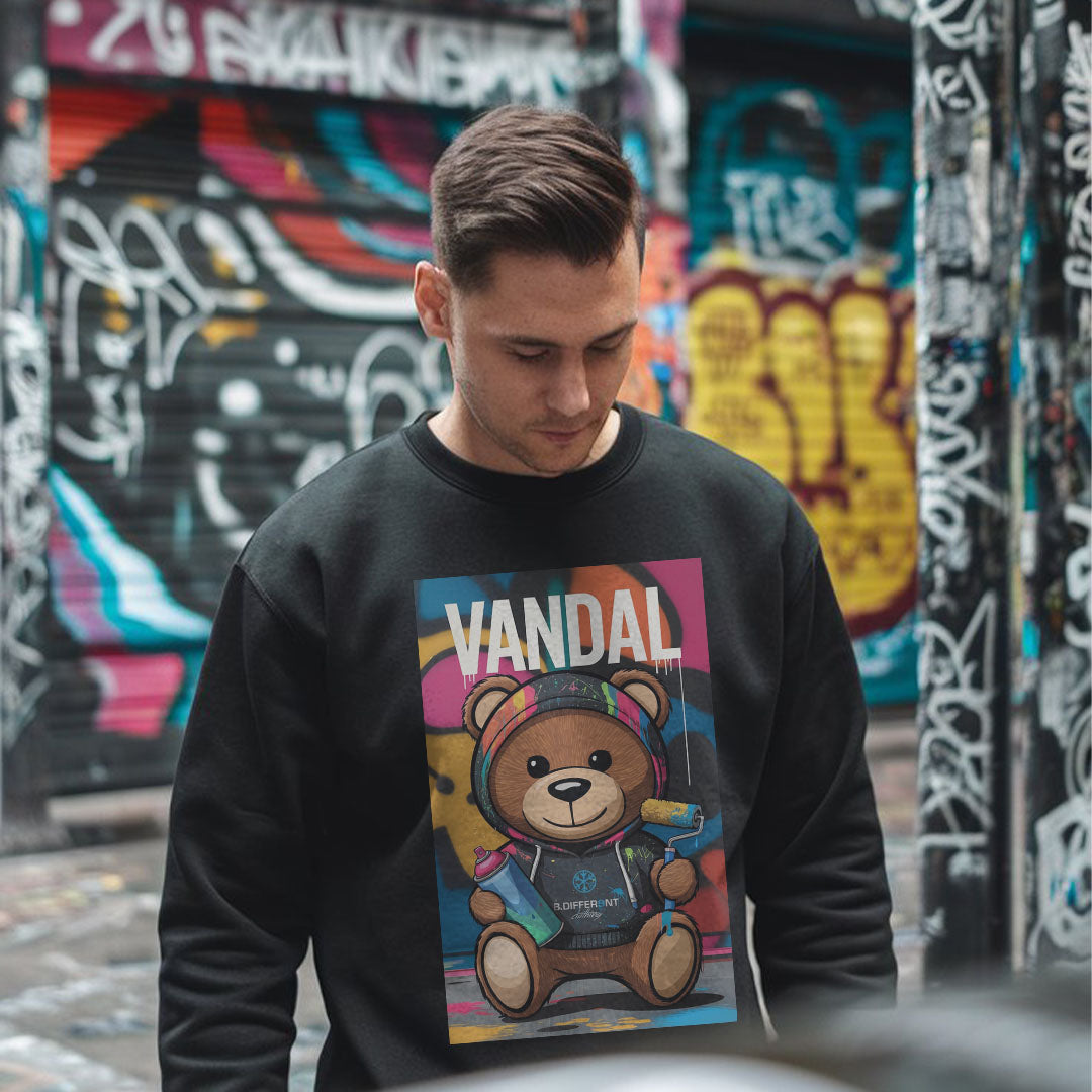 This is our Graffiti Vandal Teddy Bear Sweatshirt: because even ‘toys’ can dream big and leave their mark. This graffiti sweatshirt reminds us that every graffiti king of the streets was a toy once!