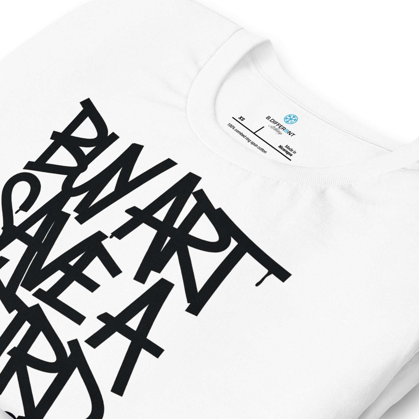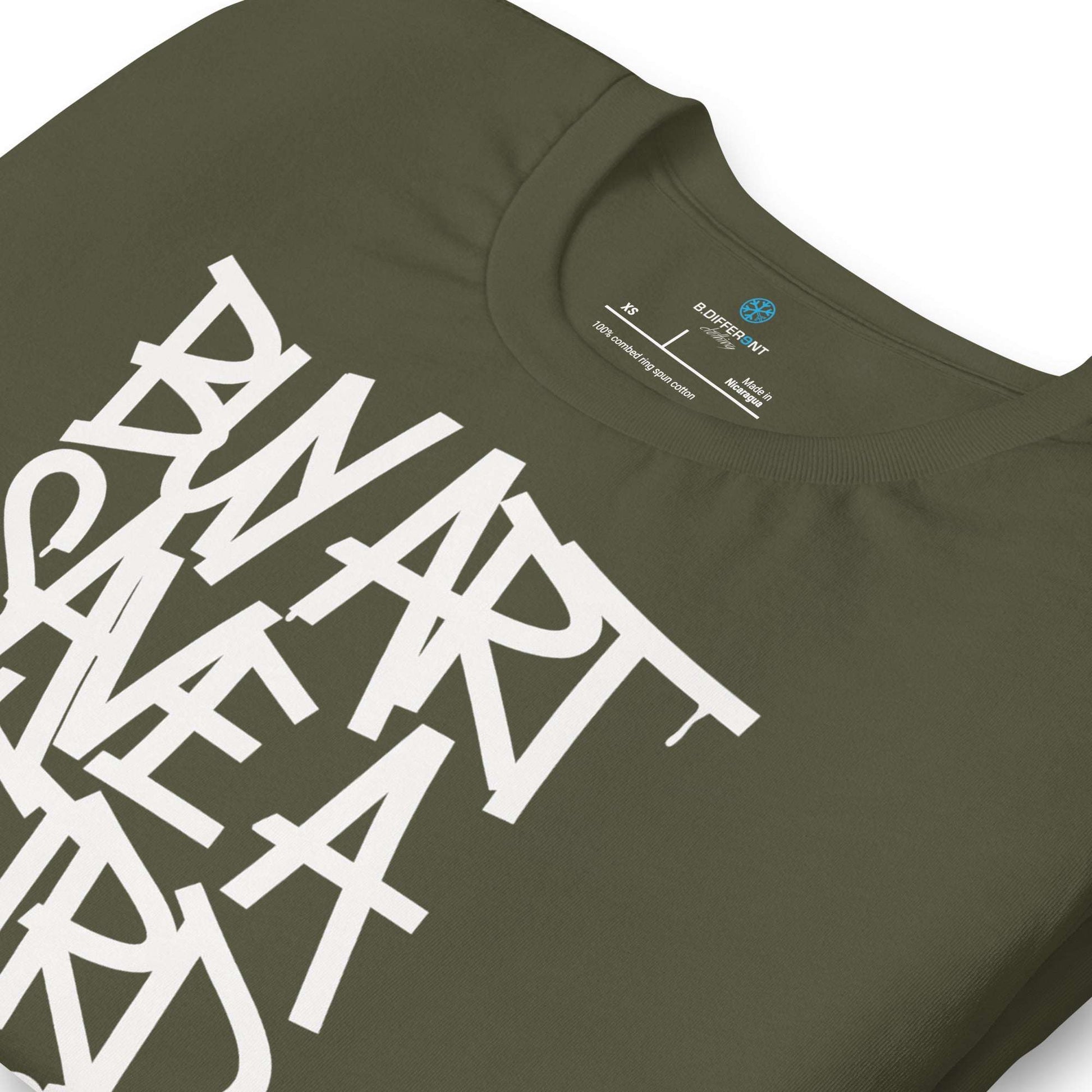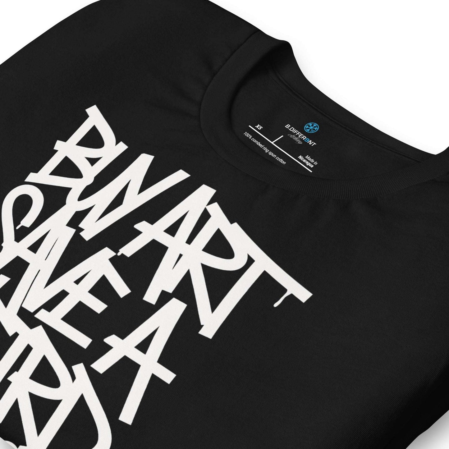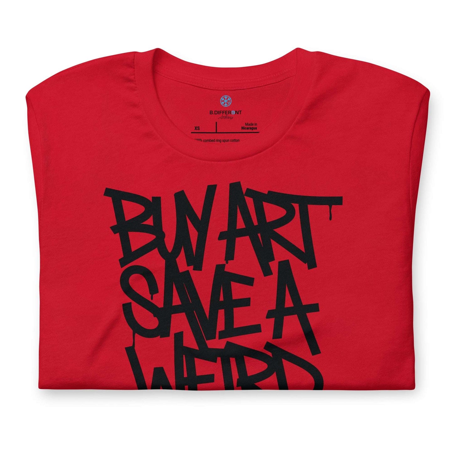 Wear the message. Fund the madness. This graffiti t-shirt is your reminder that buying art doesn’t just decorate walls—it keeps the weird ones alive and thriving. Buy art, save a weird person. (Yes, like us.)