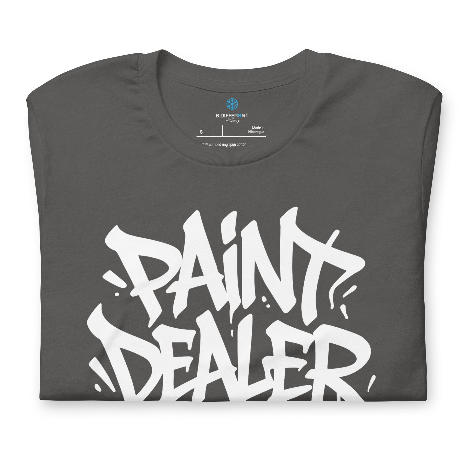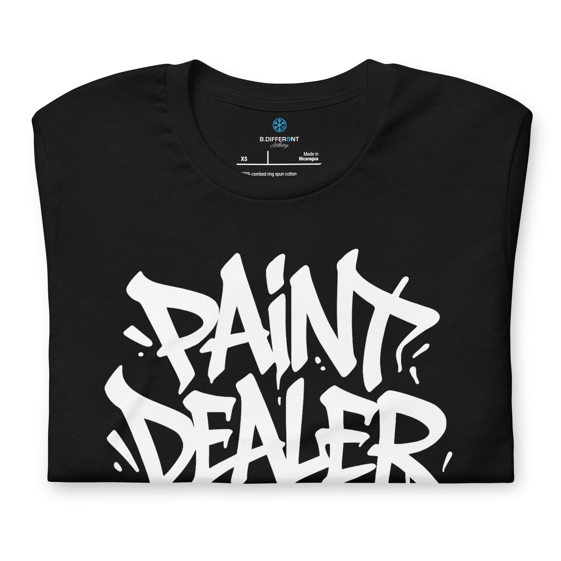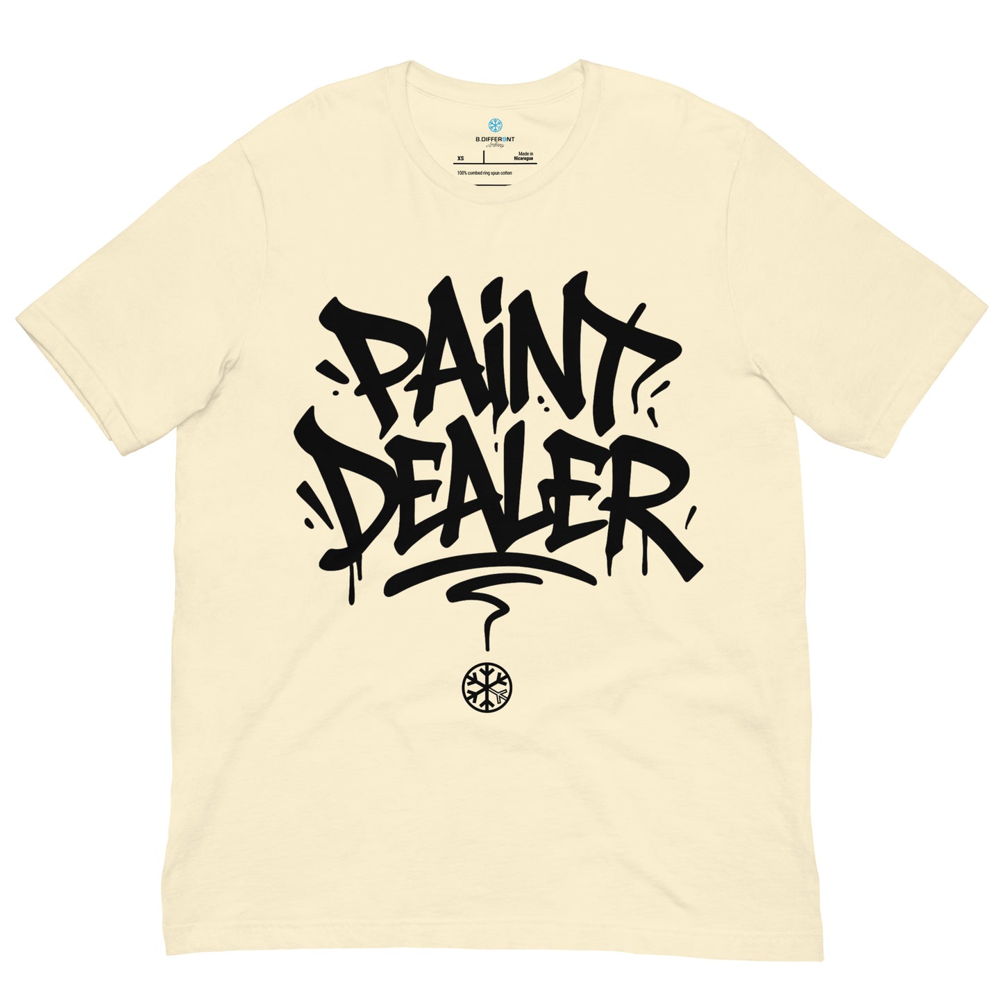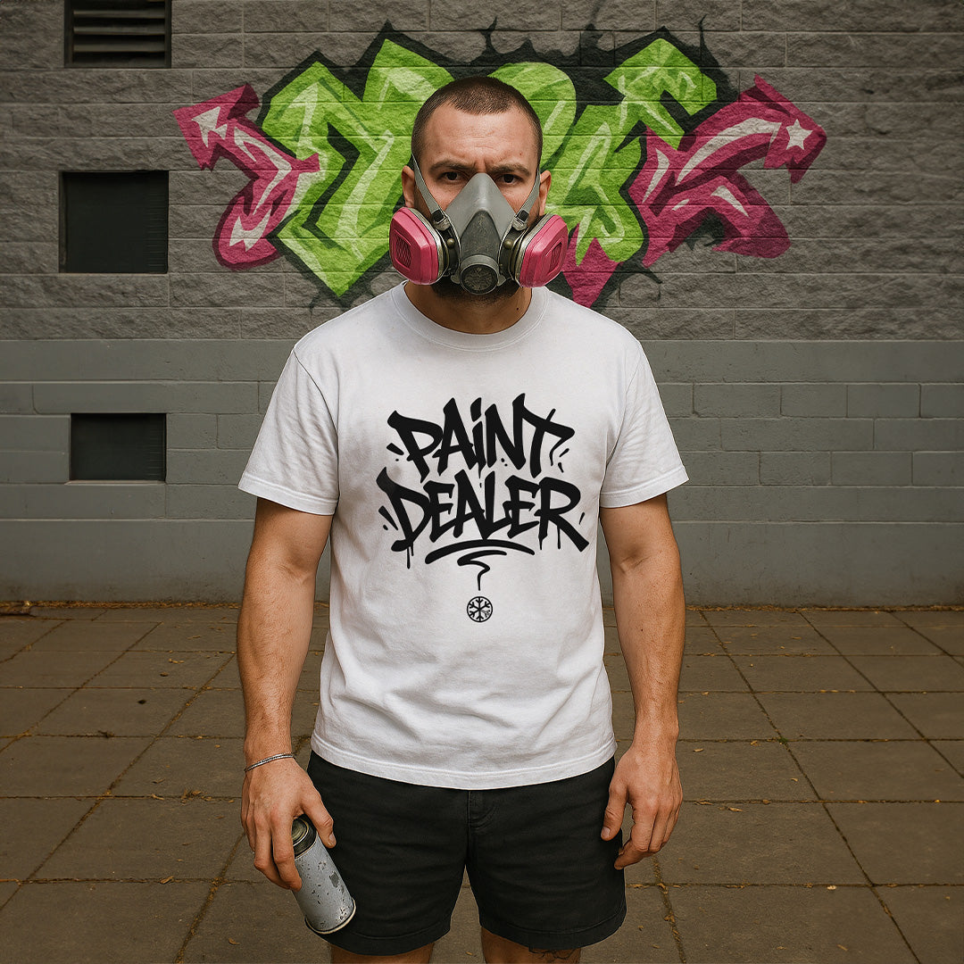 Forget powder and pills, our dealer is slinging cans. No highs, no lows, just paint fumes, sick tags, throwies, and pieces. This graffiti tag t-shirt is for all the misfits who see walls as canvases.