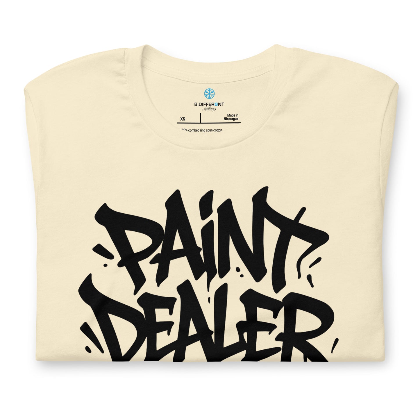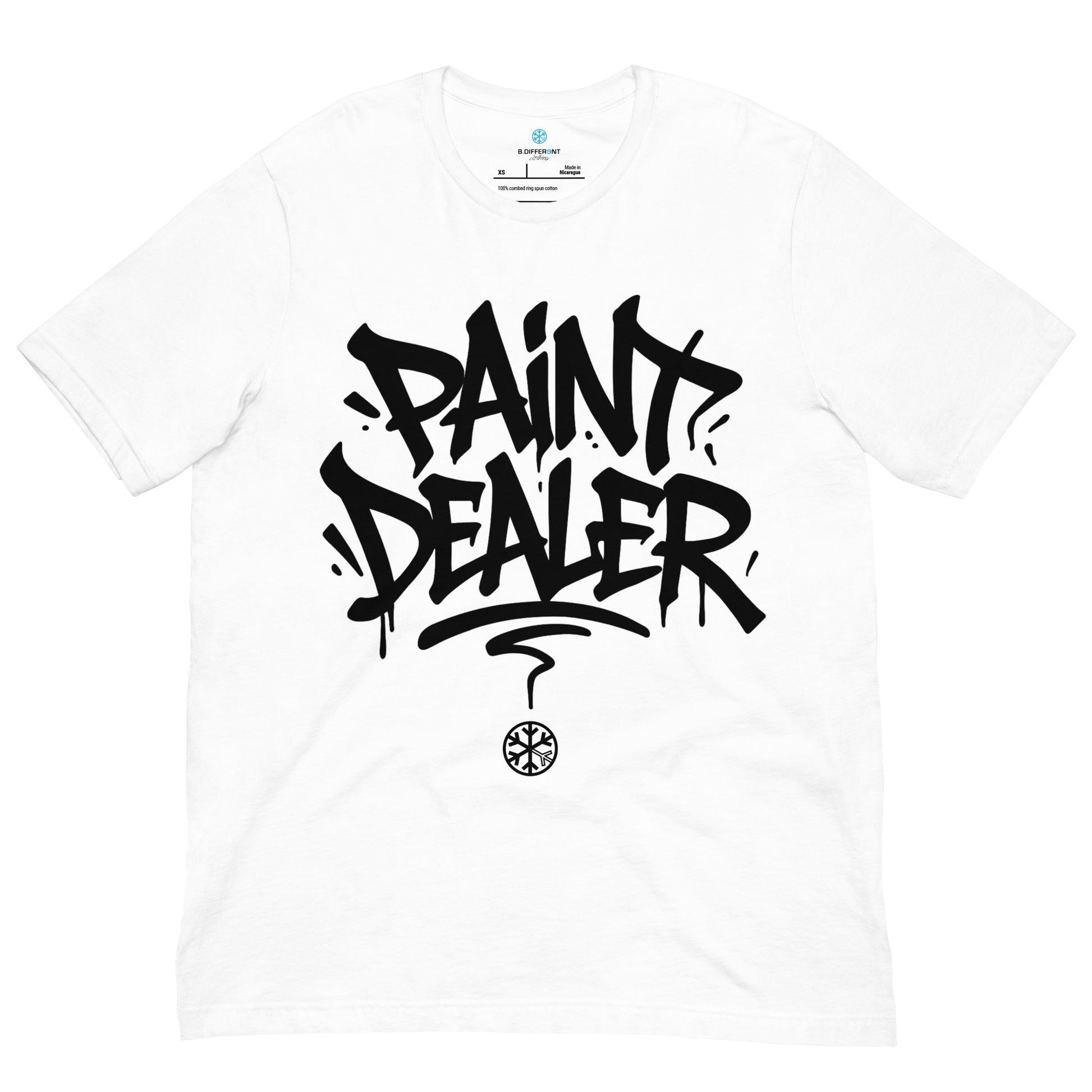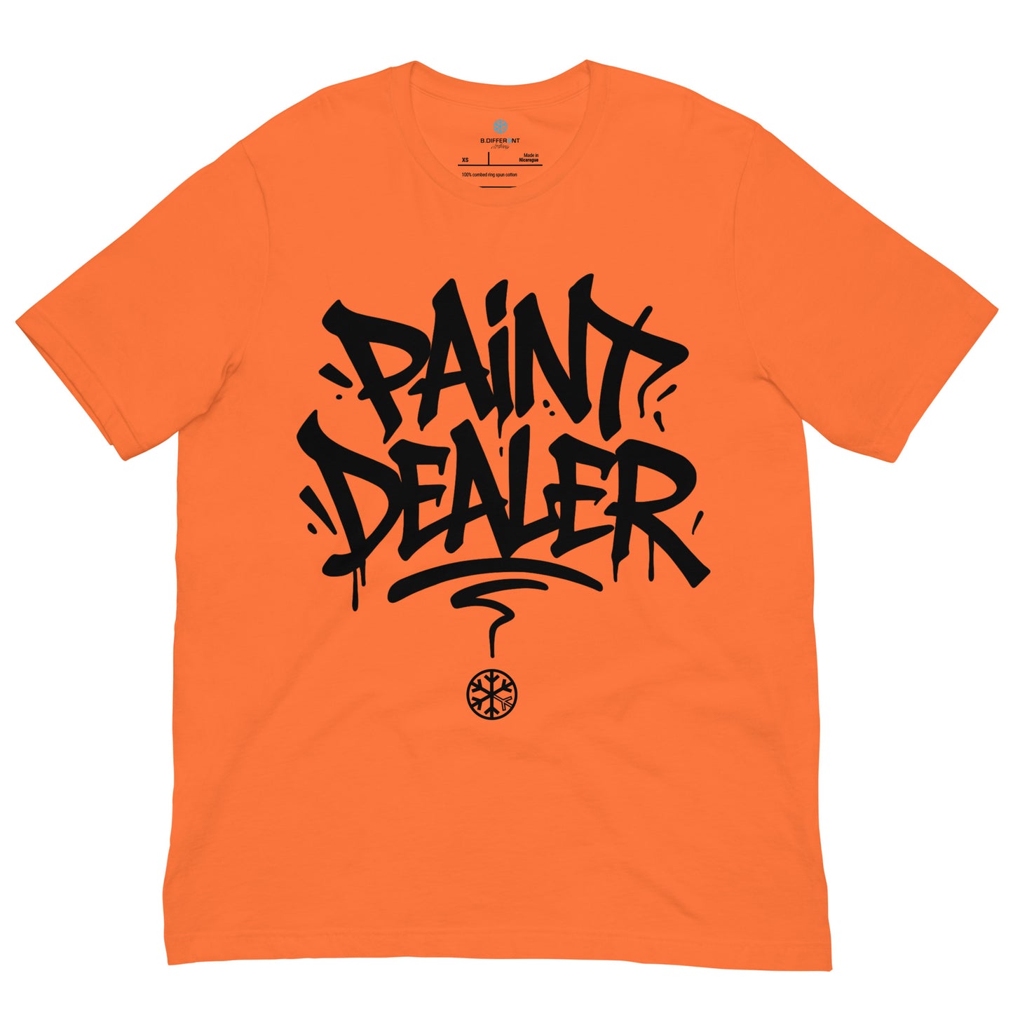 Forget powder and pills, our dealer is slinging cans. No highs, no lows, just paint fumes, sick tags, throwies, and pieces. This graffiti tag t-shirt is for all the misfits who see walls as canvases.