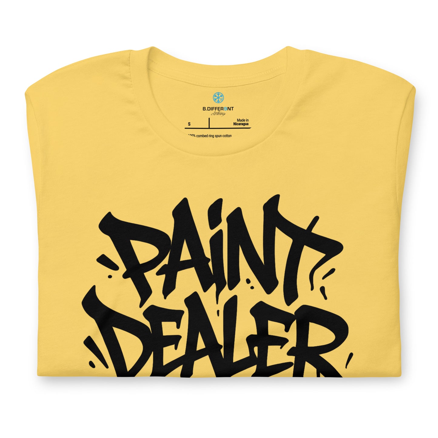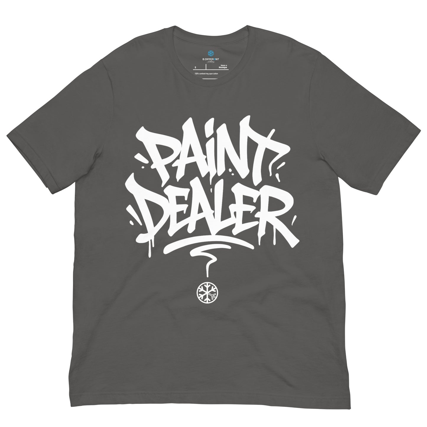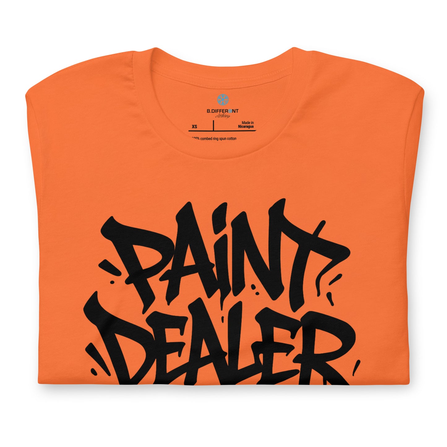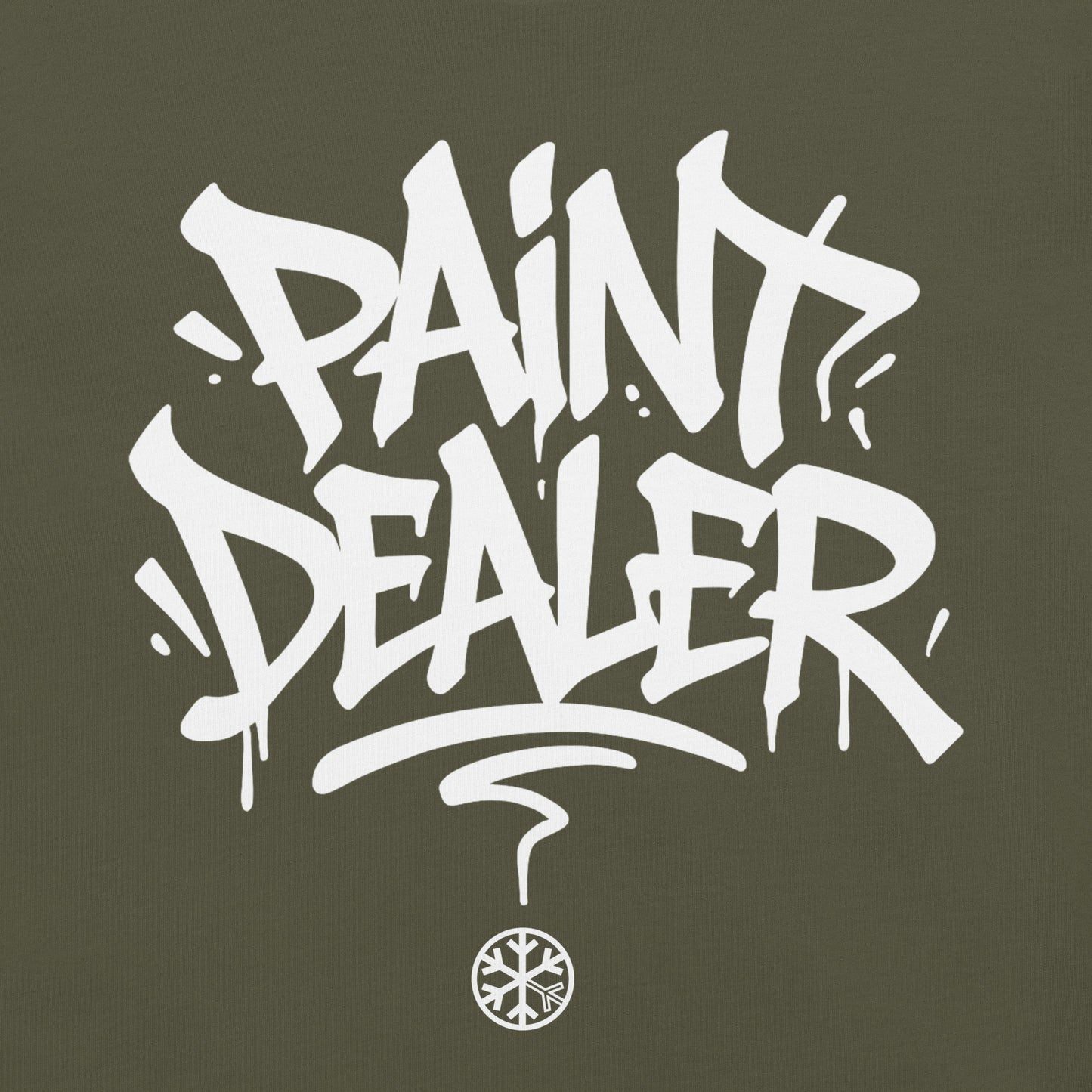 Forget powder and pills, our dealer is slinging cans. No highs, no lows, just paint fumes, sick tags, throwies, and pieces. This graffiti tag t-shirt is for all the misfits who see walls as canvases.