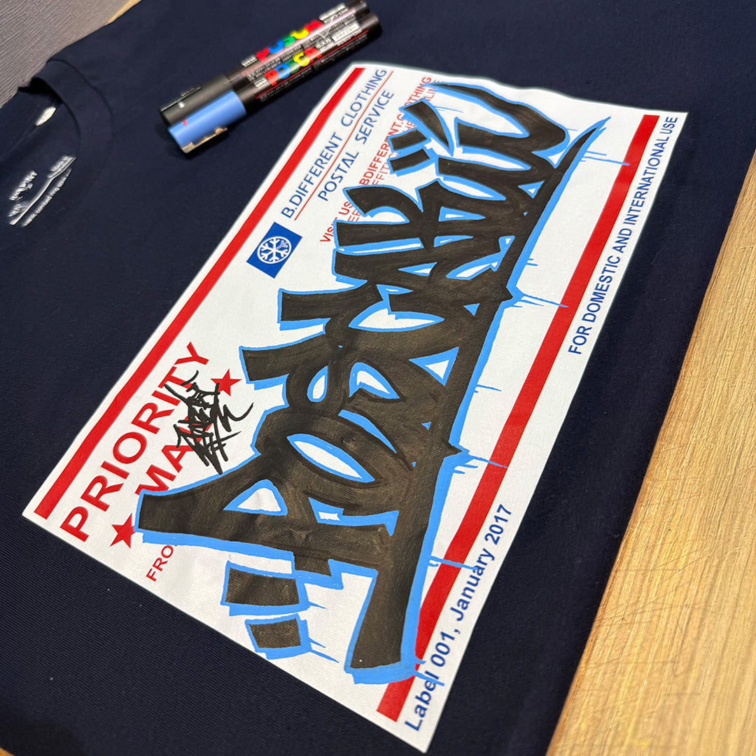 The Priority Mail Graffiti Tee is inspired by the iconic USPS Priority Mail label turned graffiti staple, this high-quality graffiti t-shirt with a regular fit and heavy-weight fabric is made for your freshest graffiti tags, throw-ups, or full-blown pieces. Whether you're hitting the streets or just repping the culture, grab a marker and make it yours, express yourself, no postage required!