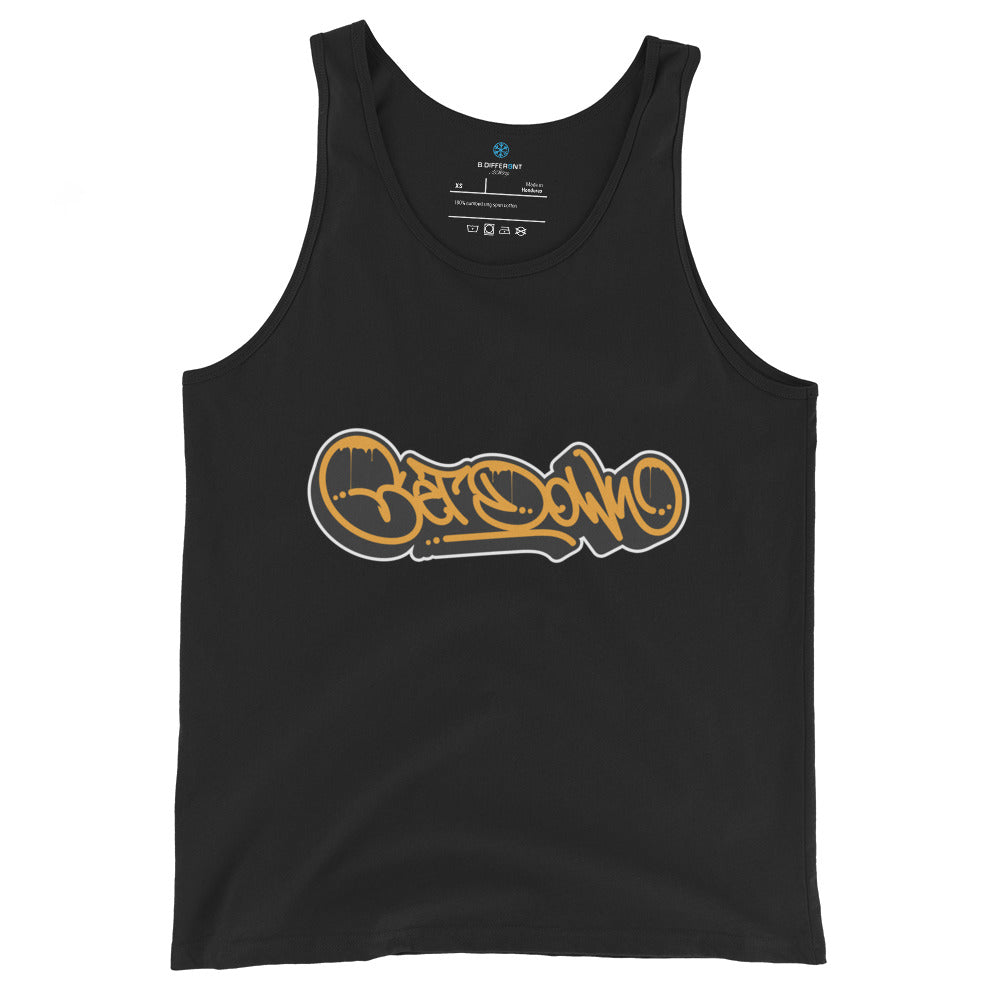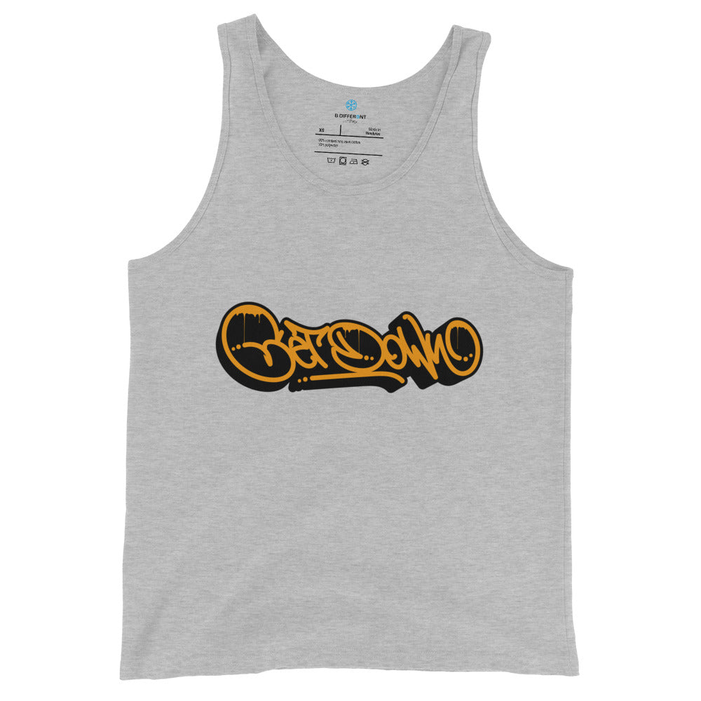 This is more than just a graffiti tank top; it’s a call to action. This tank top features a graffiti tag graphic straight from the heart of graffiti culture.